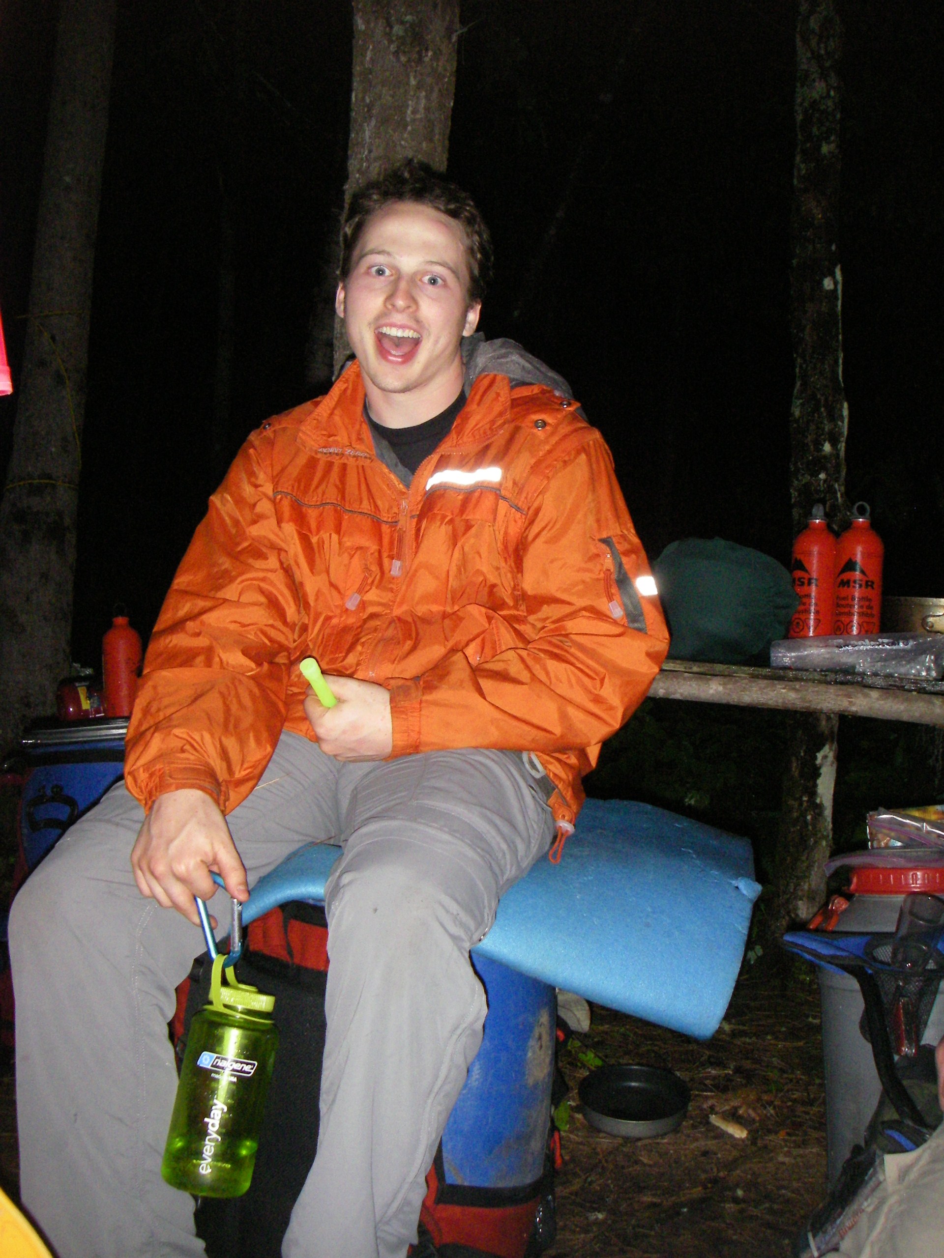 What a great day on the water! When we got to our camping spot for the night, we decided to go for a nice refreshing swim (of course it started to rain a little bit too). With camp set-up, we enjoyed a little gift from one of our friends who was unable to make the trip this time and spend a good evening talking around the campfire. I wasn’t much of a drinker back then and very quiet, I remember distinctly Sylvain not feeling too trustworthy with me I think he felt like I had something to hide. It only took a few more conversations to break in the friendship. Besides, it was very cold for the time of year, I only had sandals and my socks were wet, I didn’t want to go for my backup pair at the time (it was still raining on and off) so it was a little bit of an unpleasant evening in terms of comfort.